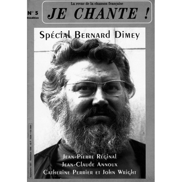 JE CHANTE ! DISCOGRAPHIES BERNARD DIMEY, Jean-Claude Annoux, Catherine Perrier, John Wright, Jean-Pierre Réginal, Georges Brassens, Michel Célie / La revue de la chanson française / N° 5 / Réédition 1996 / 56 pages